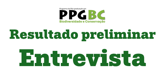 O Programa de Pós-graduação em Biodiversidade e Conservação - PPGBC, torna público o Resultado Preliminar das Entrevistas e Defesa dos Projetos de Pesquisa, do Processo Seletivo para a Turma 2026, conforme Edital 1/2025 PPGBC.